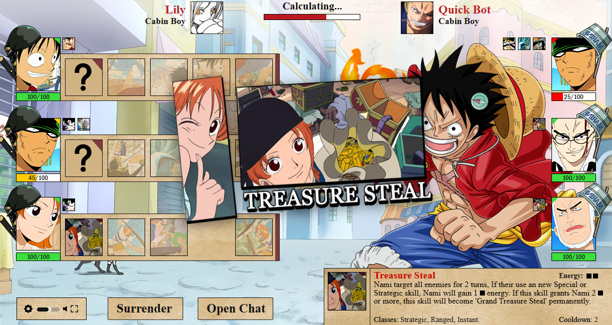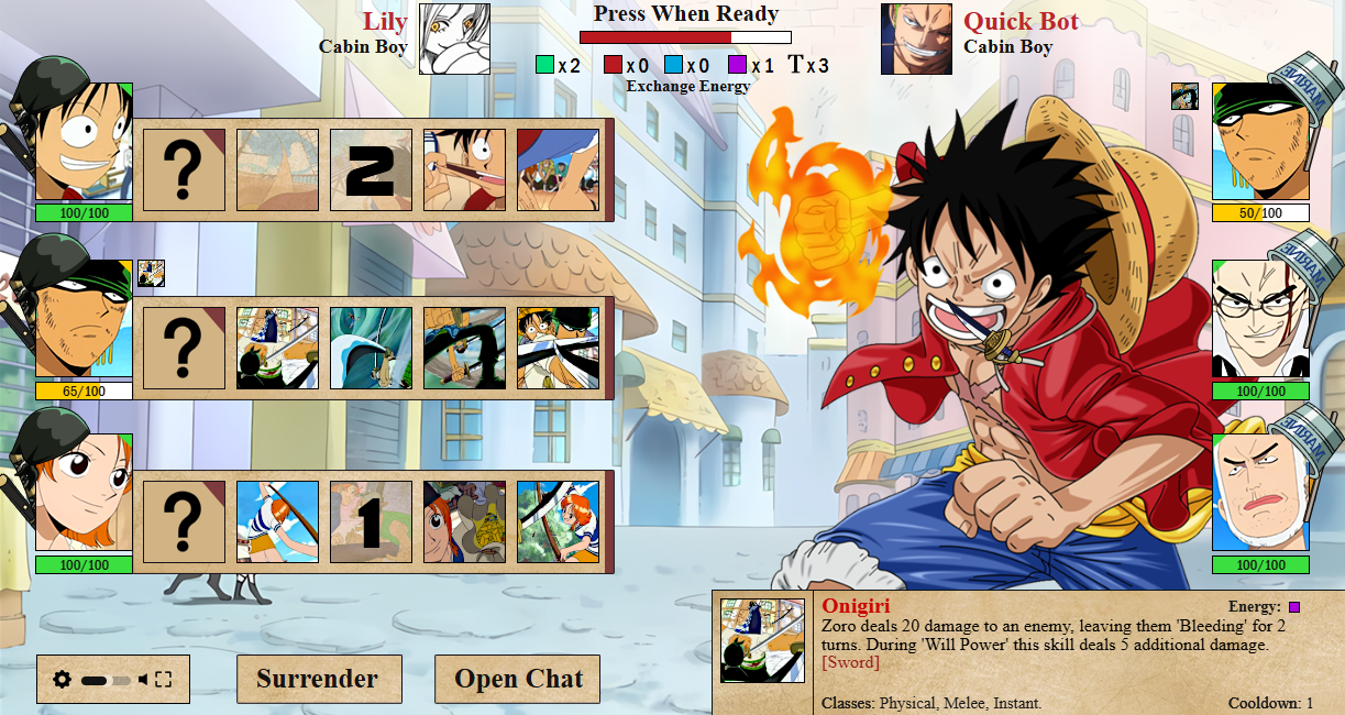 Select 3 pirates from a diverse cast of characters, strategize, and battle against other players. Winning is all that matters.
